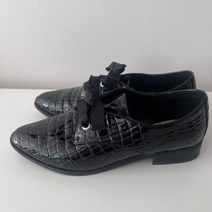 Aldo black patent, faux-snake, lace-up loafers, pointed toe (size 9)