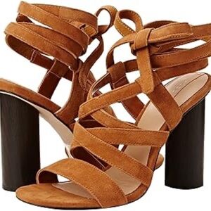 Aldo camel brown suede strappy lace up Exerila block heel sandals - size 10