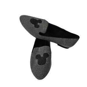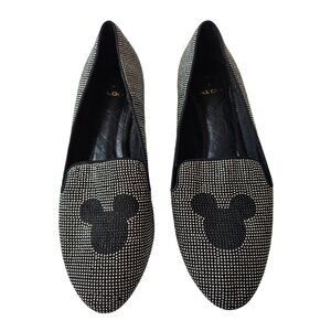 Step into style with these Aldo Walt Disney Women's Flat Shoes in a sleek silver and black design. Featuring a charming Mickey Mouse logo and sparkling rhinestone accents, these limited edition flats are perfect for any occasion from casual outings to formal events. The slip-on style and almond toe shape provide both comfort and elegance, making them a must-have addition to any fashion-forward wardrobe.