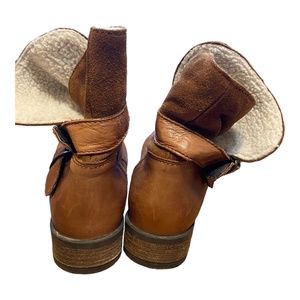 Good used condition with minor signs of wear including some scuffs on bottom & fading of interior size label & shearling show some slight wear & pilling. Some scuffs on leather but this adds to the distressed look. Front of right boot has some slight marks on suede (see pics)
