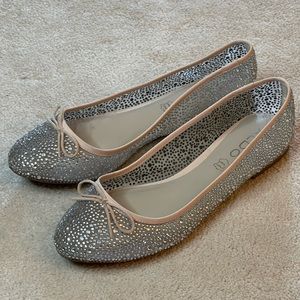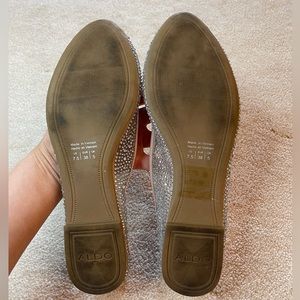 Aldo flats with rhinestones. Bow accent. Rubber soles. Excellent condition. Worn once. Size 7.5. Comes in original shoebox.