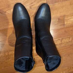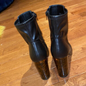 ❤️SALE Click offer $39❤️⭐️Super Comfy meets style in these Rare ⭐️ Aldo matte Black Round toe leopard print Chunky heels zipper sides ankle boots Sz 10 approx measurements preloved scuff toe right foot wear photographed same day shipping from smoke free home
