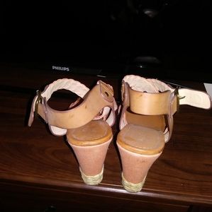 Hi there. What is the full height of the heel in inches please. They really photo as pink but are tan?