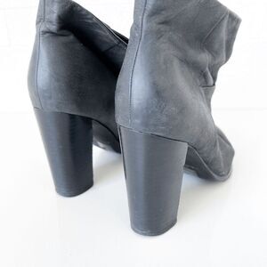 Aldo Womens Nubuck Leather Block Heel Slouchy Ankle Booties Charcoal Size 8.5