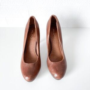 Aldo Womens Slip On Almond Toe Platform High Heel Brown 8