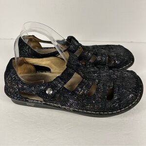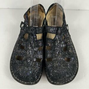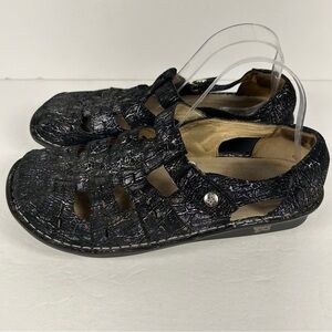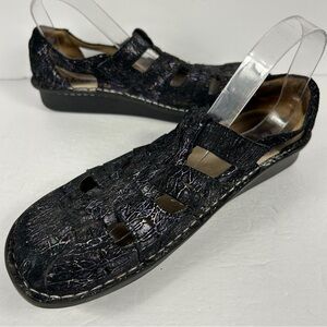 Stylish black flats with a textured finish. Ideal for casual outings. Comfortable and chic design.