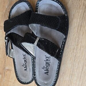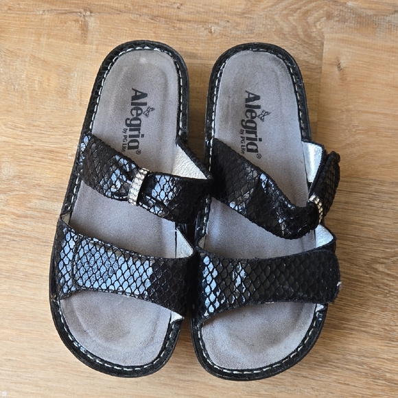 Alegria Karmen Black Snakeskin Slip On Sandals Size 38/ US8