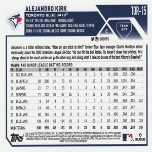 Alejandro Kirk - 2023 Topps Toronto Blue Jays Team Set Card - Card Number TOR-15