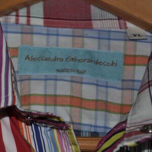 Alessandro Gherardeschi Multi Colour Stiped Plaid Snap Button Shirt XL