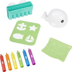 Includes 6 Bath Crayons, Caddy, Stencil, Washcloth and Plastic Whale.