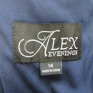 Alex Evenings Maxi Dress 14 Blue Sequin Embroidered Fit &Flare Gown Wedding 806