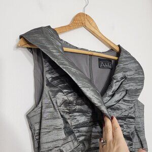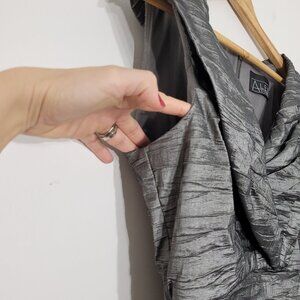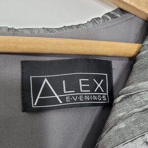 Alex Evenings Silver Coquette V-Neck Wide Wrap Shoulder Lined Wedding Guest Mother of the Bride Graduation Dress Size 8