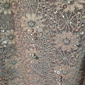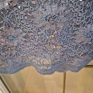 The outer fabric is lace embellished with sequin and have a scalloped edge hem