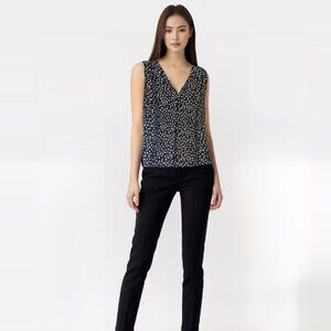 Alex & Lili black and white polka dot sleeveless blouse perfect paired with jeans or white pants