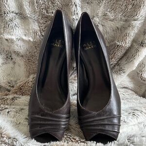 Alex Marie Dark Brown Open-Toe Low Heels Size 6