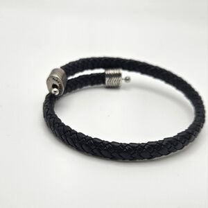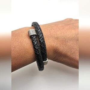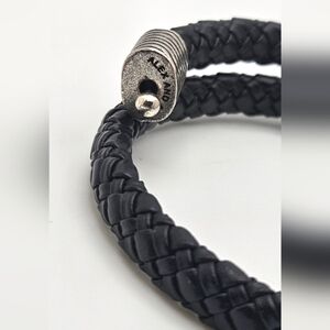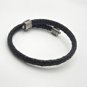 Alex and Ani Black Leather Wrap Bracelet Silver Hardware Signed