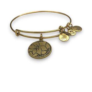 Alex and Ani Floral Flower Godmother Charm Gold Tone Adjustable Bangle Bracelet
