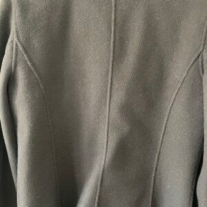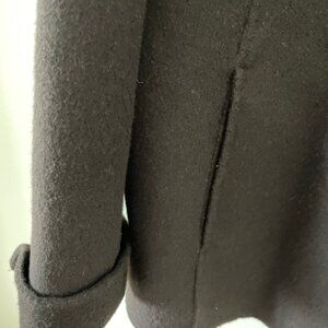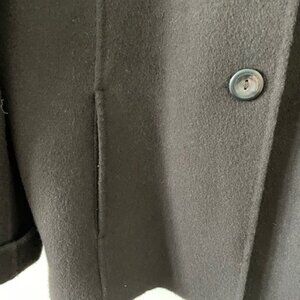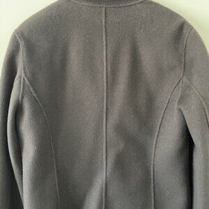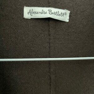 Alexandra Barlett Jacket – VTG- lightweight blazer - dark brown - soft felt like material –tailored looking - seams in front and back - slit pockets- cuffed sleeves - 100% wool – padded shoulders – unlined - 1 button closure - Size L - measurements from under the arms - 16 in sleeves – 16 in side length , 20 in across chest , 25 in back length (from neck to bottom of jacket)- smoke/pet free home