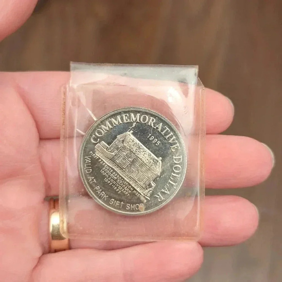1995 Commemorative dollar, value at gift shop $1, from the Alexander Graham Bell National Historic Park in Baddeck, Nova Scotia. Commemorating the first parent's association meeting of Baddeck Academy's 100th anniversary 1895 to 1995.