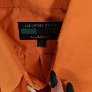 Alexander Julian Colours Orange Dress Shirt Long Sleeve S 14-14.5 32/33 Mens