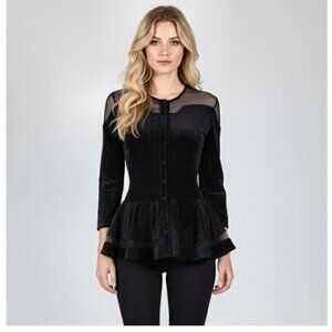 Alexander McQueen Black Velvet Peplum Cardigan Top - Rare Find, Womens Size M