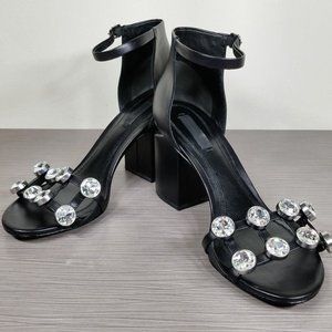 Alexander Wang Abby Crystal Embellished Sandal, Black Leather, Womens Size 8.5