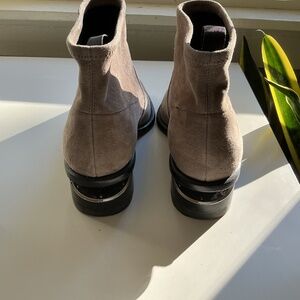 Elegant suede booties with a pointed toe. Easy slip-on design. Perfect for any occasion.