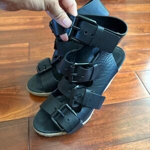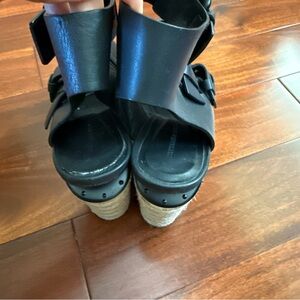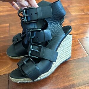 Alexander Wang Black Wedge Sandals with Buckle Accents