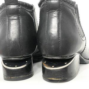 Condition: Good, moderate wear throughout, some wear to heels and tarnishing to one silver cut out on heel, leather is in excellent condition