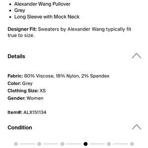 Alexander Wang Mock Neck Sweater - Grey (Size XS) | Very Good Condition