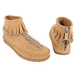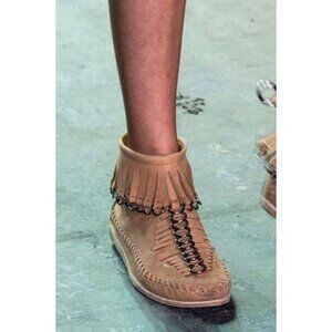 Alexander Wang Montana Fringed Leather Ankle Boots 36 6 Tan Moccasin $595