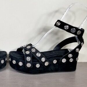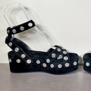 Alexander Wang Sandrah Studded Platform Sandal Black Suede Womens Size 10.5/40.5
