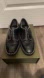Black smooth leather with silver ball trim. Light creasing at toes and wear on soles. No box or dustbag. Authentic.