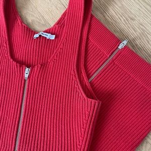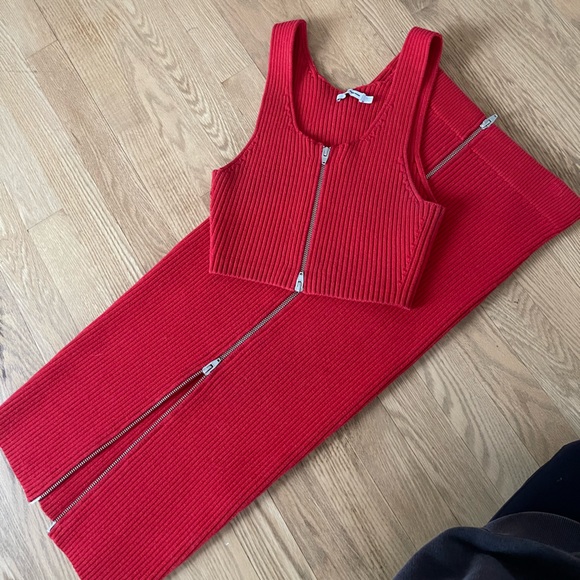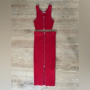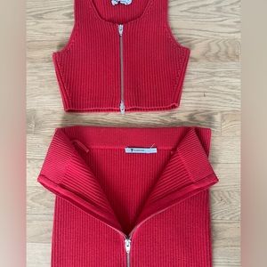 Ribbed knit skirt and tank set. Perfect cherry red. Been holding onto it for a while but have not lost the baby weight to fit back into it :(