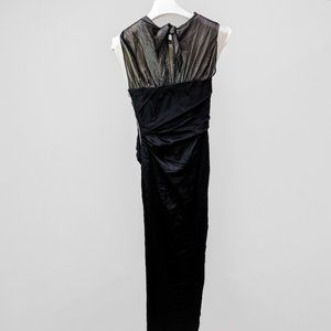 A luxurious sleeveless gown from Alexander Wang in black silk with a scoop neck, cream silk and mesh accent at the bust, a structured sweetheart bodice with ruched detailing, and a back keyhole detail with tie closure at the nape. This daring dress features an internal body suit with snap button closures, an oversized side zip closure, and a bold side slit. Size: 0 Condition: Pristine; no visible signs of wear Approximate Measurements (Laid Flat): Shoulder: 12” (30.5 cm) Chest: 13” (33 cm) Waist: 11” (28 cm) Length down back: 61” (156 cm) Composition: Body: 100% Silk; Combo 1: 92% Silk, 8% elastane; Combo 2: 100% Silk; Combo 3: 100% Silk; Combo 4: 80% Nylon, 20% Elastane
