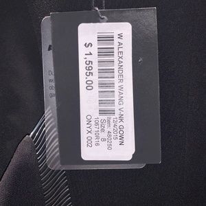 Sleeveless formal floor length dress from Alexander Wang. Brand new, never worn, tags still on the dress. Regular retail price $1595.00. Long black V-neck with back zipper, size 8, Tiacetate material.