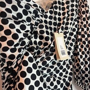 Timeless polka dot mini dress with a bodycon fit and romantic gathered detailing at the bust and skirt.