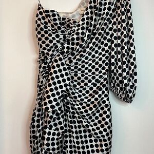 Alexandre Vauthier Polka Dot One Shoulder Silk Blend Mini Dress