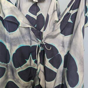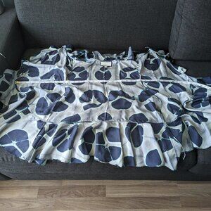 This pretty blue wrap dress from Alexis is in excellent used condition. 100% silk with spaghetti straps, self tie, ruffle hems and neckline.
