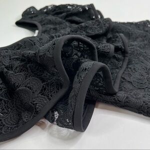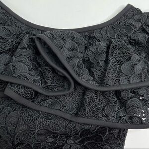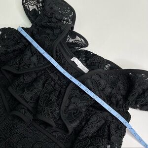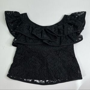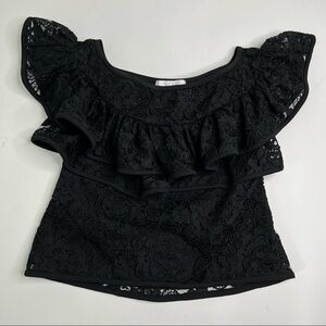 Alexis Crista Ruffled Off-the-Shoulder Black Embroidered Thick Lace Dressy Top