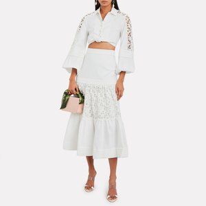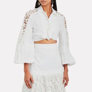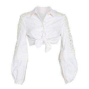 Alexis White Cropped Lace Inset Shirt, size Small.