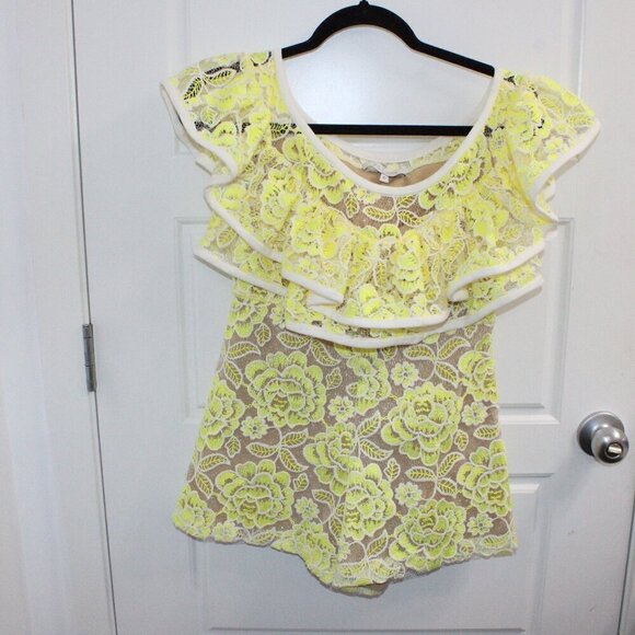 Chic romper with high quality floral lace design. Features layered ruffle sleeves. Perfect for warm weather. It is gorgeous but sadly did not fit me.