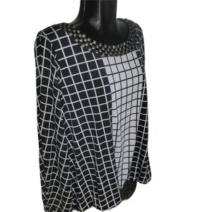 Alfani Black and White Grid Pattern Long Sleeve Top 3X