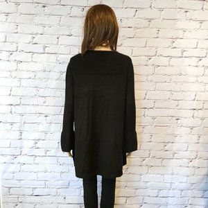 Alfani, Black long sleeve tunic sweater with zipper detail at the cuffs