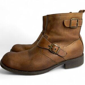 Alfani Brown Leather Square Toe Ankle Harness Biker Motorcycle Boots Men's 11.5