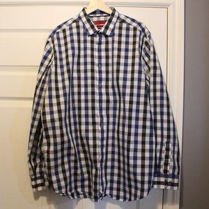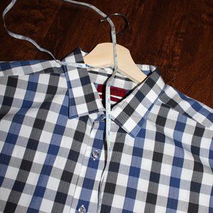 Alfani Blue, Black, Grey and White checkered shirt. 17 1/2 neck and 36-37 arm. 9/10 condition. Its a very nice shirt.