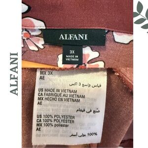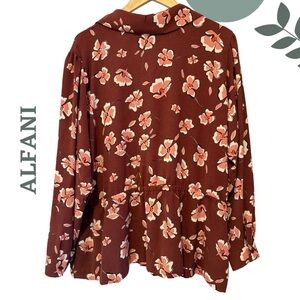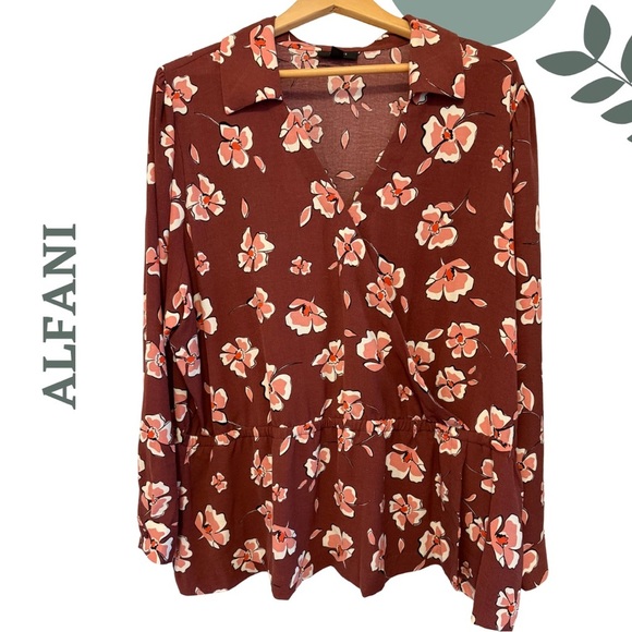 Alfani Faux Wrap Floral Long Sleeve Blouse Brick Red Pink Plus Size 3X
