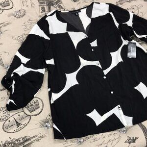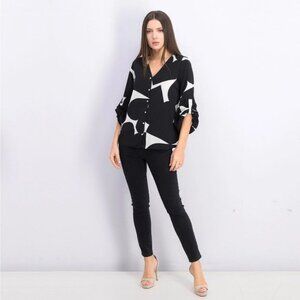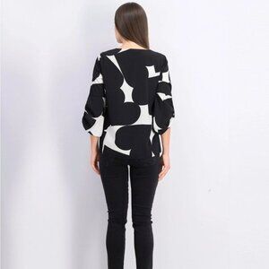 An oversized heart print brings bold contrast to the soft gathered sleeves of this Alfani blouse, giving you a fresh look for your favorite separates.