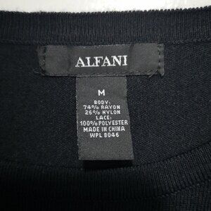 Alfani Ladies Size Medium Black with White & Tan Embroidery Lone Sleeve Sweater