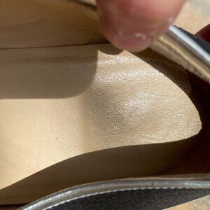 Alfani Silver Loafers in Women's Size 11. Pointed toe. Slip on style. Very good pre-loved condition. Minor wear on soles but no flaws. See photos for details.